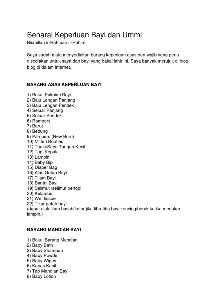 Posted by baby_cuteadeliashoppe at 01:21 no comments: Pilis air mancur tuam / tungku baby : Budget shopping untuk mommy to be semoga bermanfaat baju baby murah2 1. Sebelum menyediakan keperluan ibu dan baby ke hospital, pastikan anda print senarai semak di bawah. Membeli barang keperluan baby pertama adalah suatu perkara yang menarik kerana ramai pasangan yang teruja dan menanti kehadiran si manja mereka.